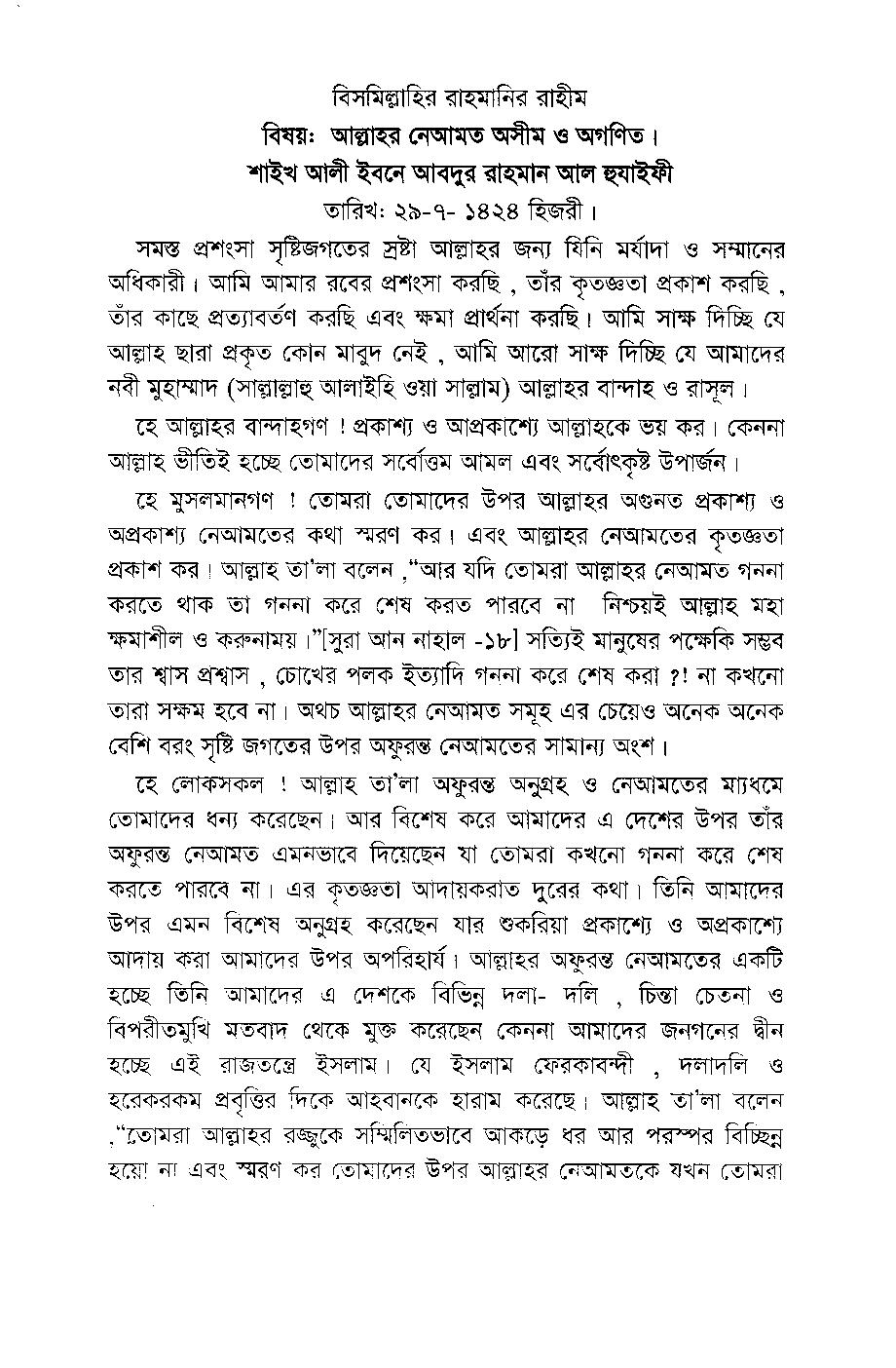 বাংলা -خطب المسجد النبوي باللغة البنغالية