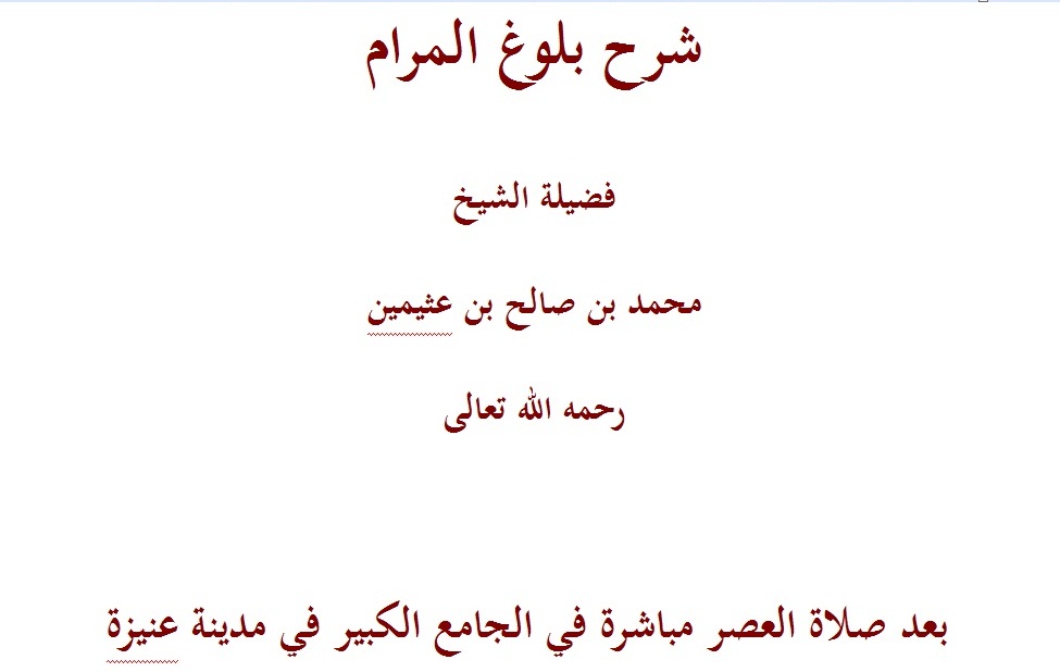 فتح ذي الجلال والإكرام بشرح بلوغ المرام ،ابن العثيمين وشرح بلوغ المرام بعد صلاة العصر