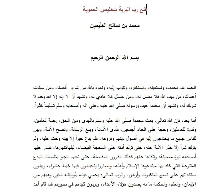 فتح رب البرية بتخليص الحموية ( الشيخ ابن عثيمين ) ملف world