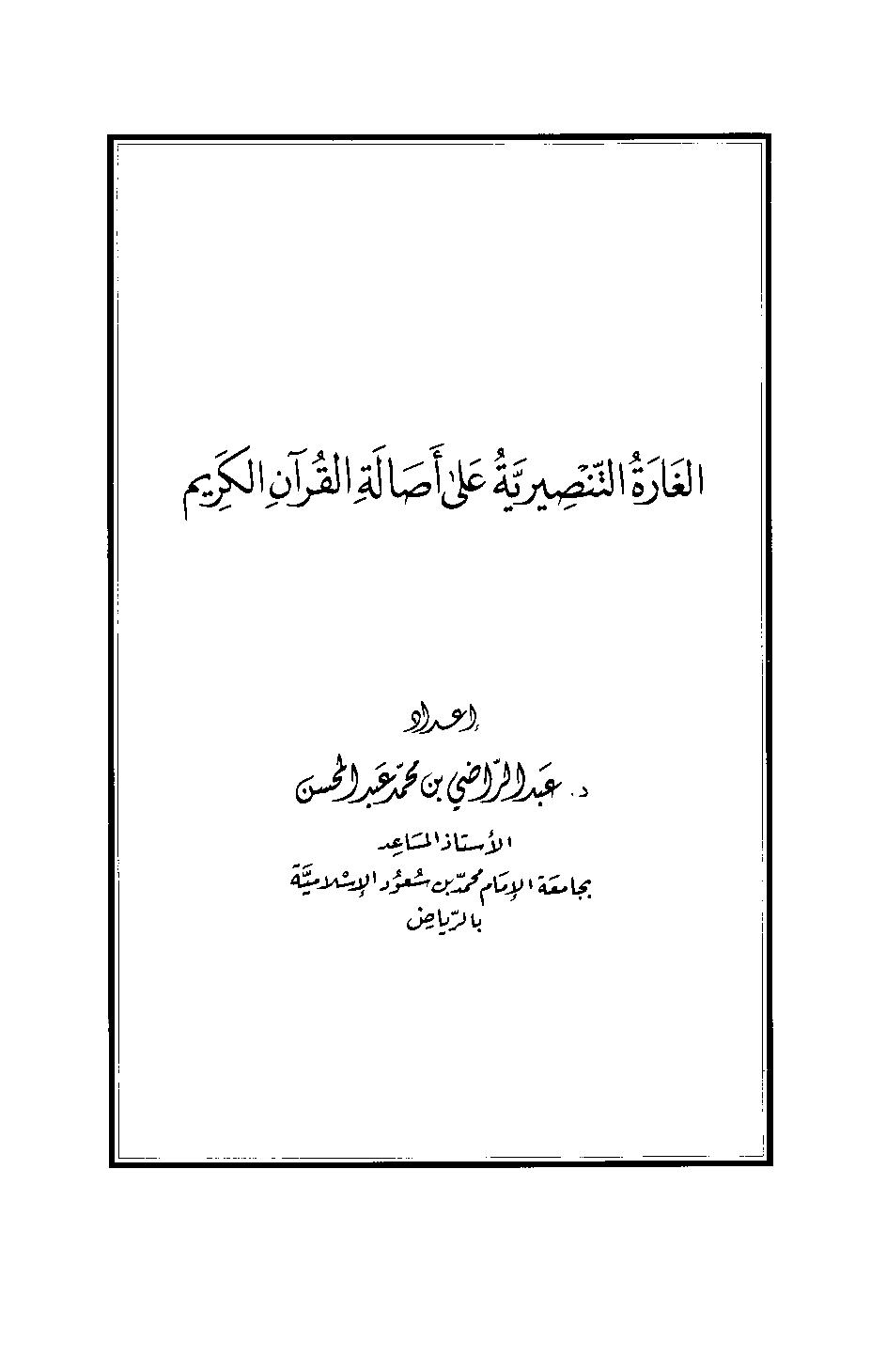 الغارة التنصيرية على أصالة القرآن الكريم  المؤلف: عبد الراضي بن محمد عبد المحسن