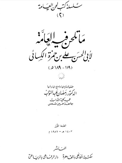 ما تلحن فيه العامة المؤلف: علي بن حمزة الكسائي أبو الحسن المحقق: رمضان عبد التواب 2014-09-15
