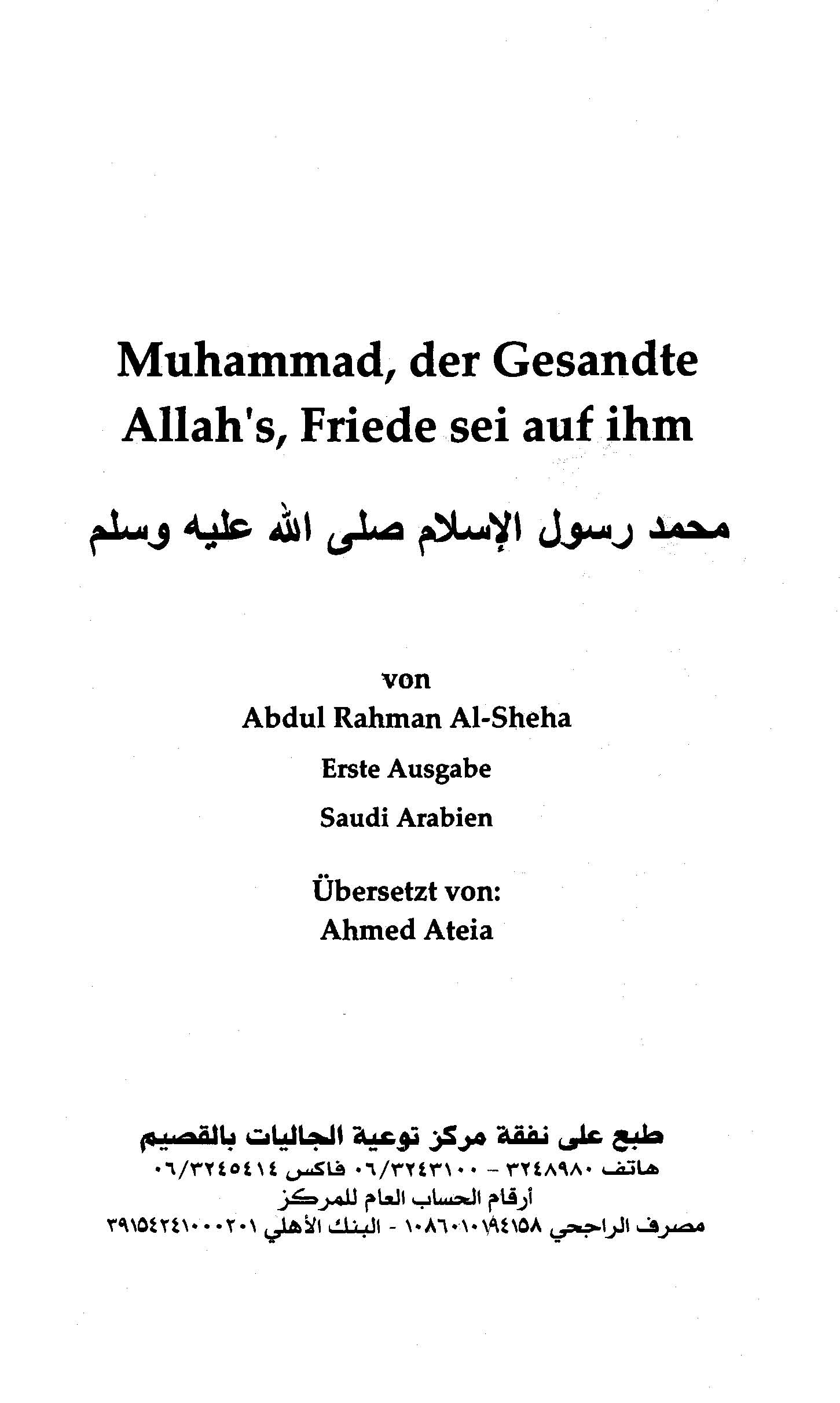 • عنوان الكتاب: Muhammad, der Gesandte Allah s, Friede sei auf ihm - محمد رسول الإسلام صلى الله عليه وسلم (ألماني)