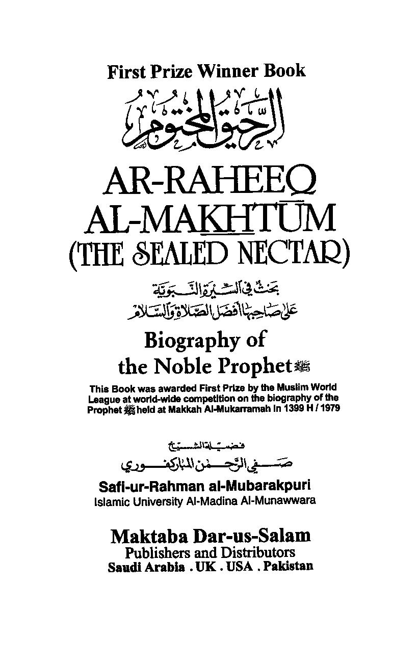 عنوان الكتاب: الرحيق المختوم - AR-RAHEEQ AL-MAKHTUM  المؤلف: صفي الرحمن المباركفوري - SAFI-UR-RAHMAN