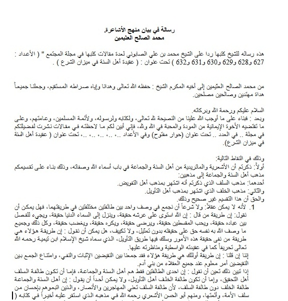 رسالة في بيان منهج الأشاعرة