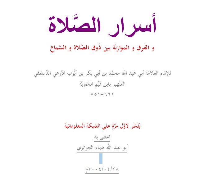 للإمَام العلامَة أبي عَبد الله محمَّد بن أبي بَكر بن أيُّوب الزَّرعي الدِّمشقي الشَّهير بابن قيِّم الجَوزيَّة