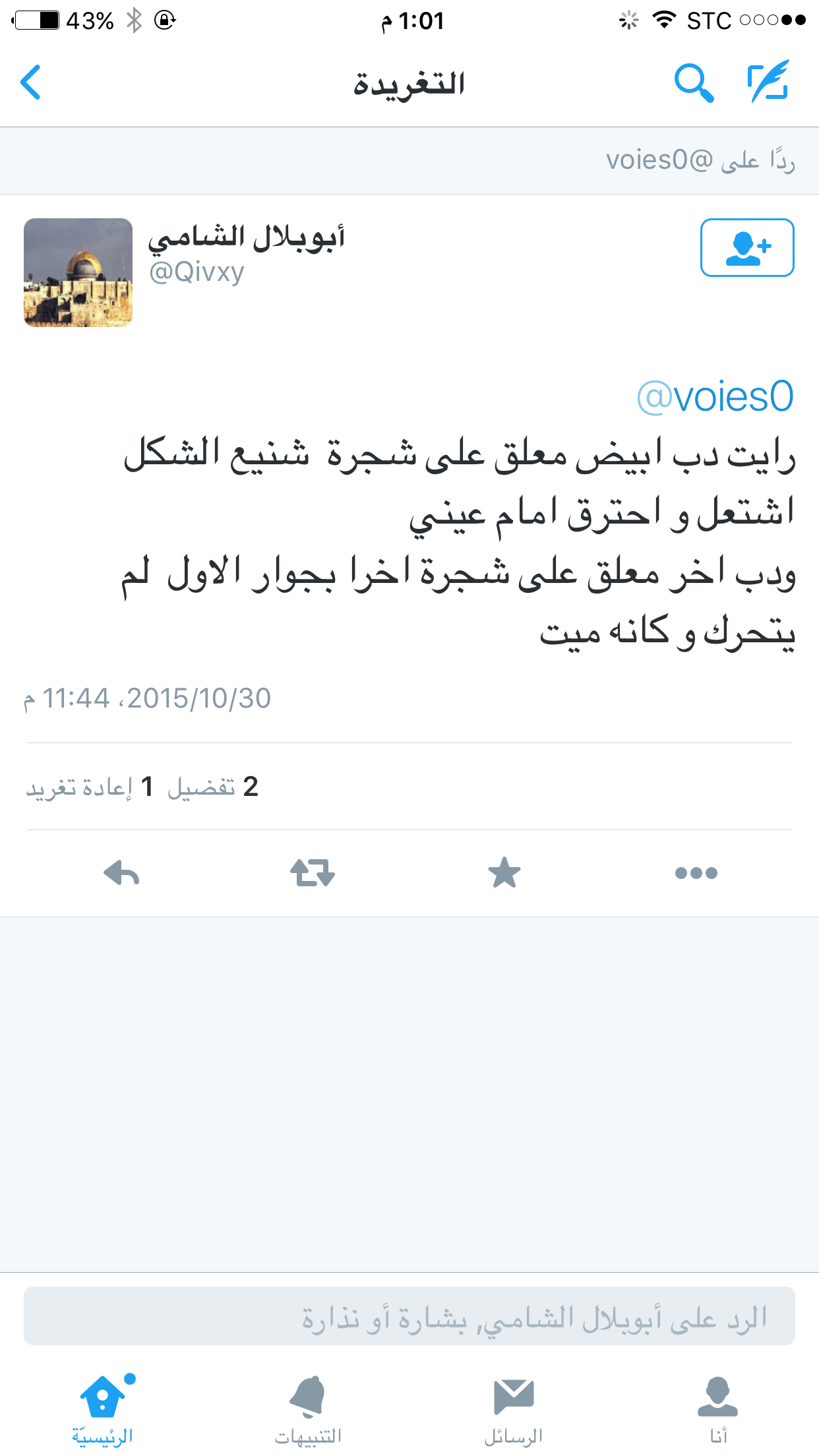 رايت دب ابيض معلق على شجرة شنيع الشكل اشتعل و احترق امام عيني