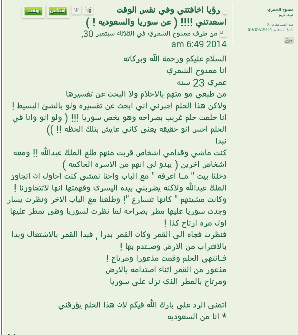 عنوان الرؤيا :رؤيا اخافتني وفي نفس الوقت اسعدتني !!!! ( عن سوريا والسعودية ! )