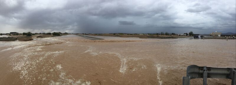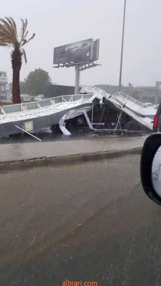 - سقوط لوحة إعلانية بسبب الأمطار في طريق المدينة.