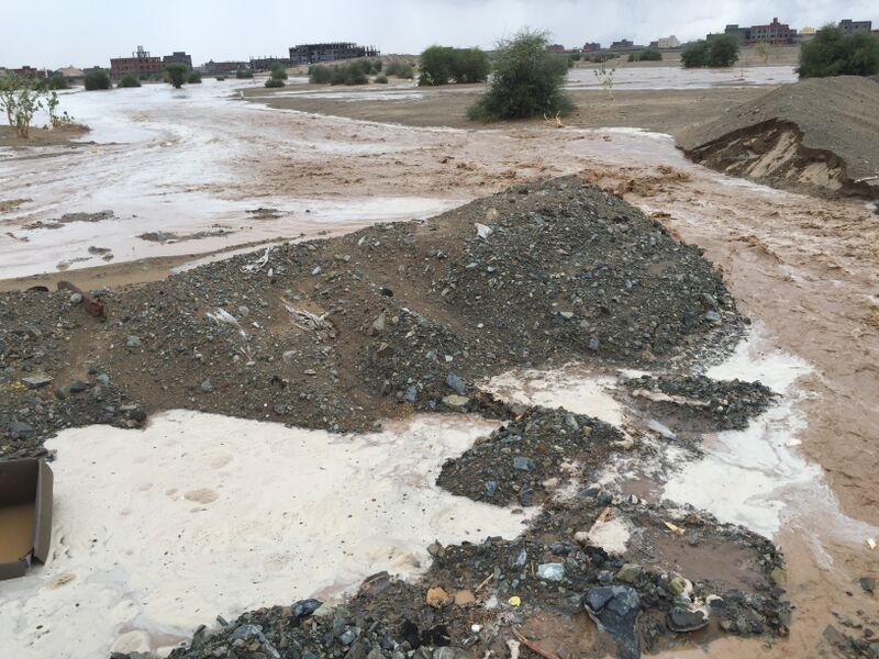 كما تسببت الأمطار في تجمع للمياه في عدد من المواقع منها: