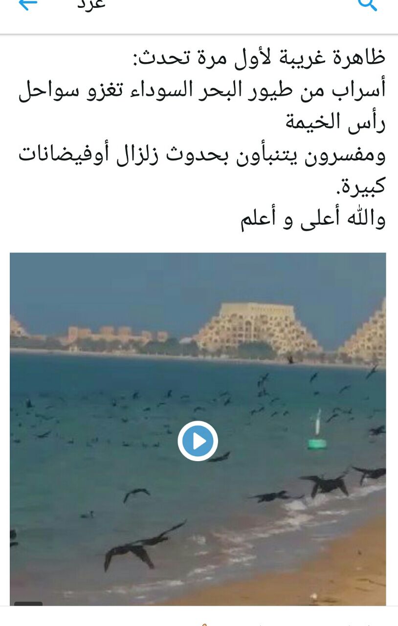 وكان «فيديو» حصد انتشاراً واسعاً عبر وسائل التواصل الاجتماعي، خلال اليومين الماضيين، لأسراب وحشود من طيور «اللوه» السوداء، صاحبه تعليق بأنها أسراب من «الغربان»، يقدر عددها بمليوني طائر، الأمر، الذي نفاه الخبير البيئي الإماراتي، الذي عاين الصور والمادة المصورة في «الفيديو»، مؤكداً أنها طيور «اللوه»، في حين لا يمكن تقدير أعدادها بدقة، مرجحاً أن تكون بمئات الآلاف.