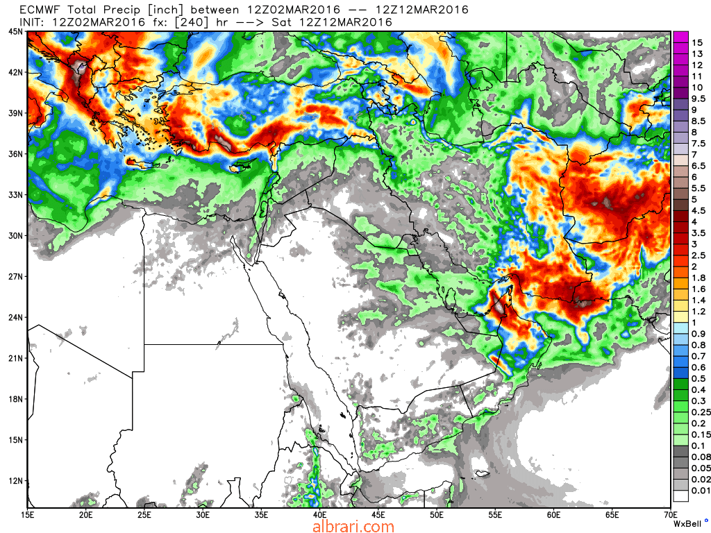 آخر تحديث من المركز الاوروبي يتوقع كميات فيضانية على اجزاء من الامارات