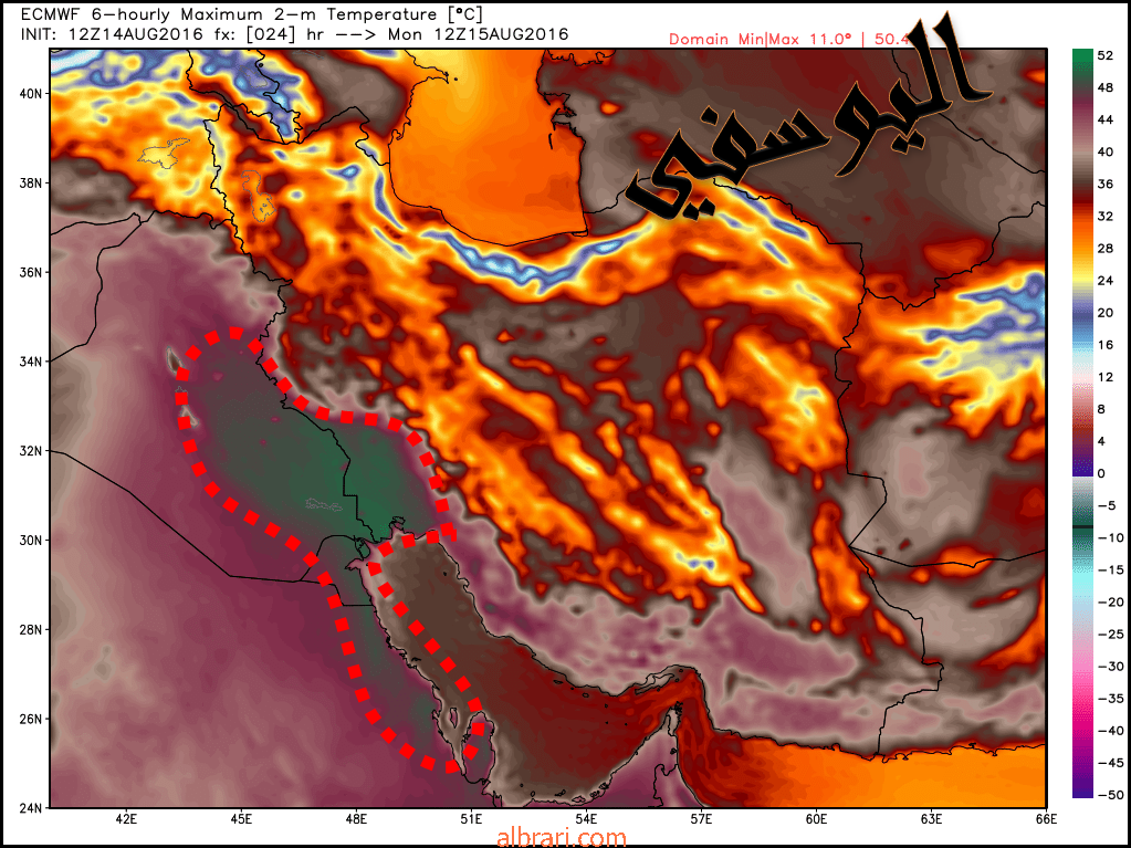 ودرجات حرارة تتراوح ما بين 48 و51 درجة والله اعلم