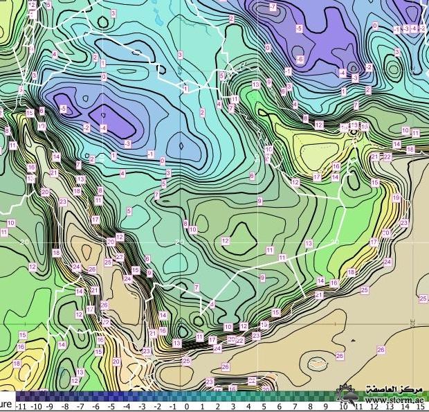 درجات الحرارة المتوقعه 5 تحت الصفر والمحسوسة 10 تحت الصفر بين حائل وتبوك
