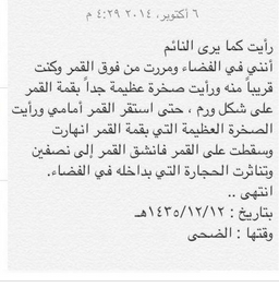 رأيت كما يرى النائم أنني في الفضاء ومررت من فوق القمر وكنت قريباً منه