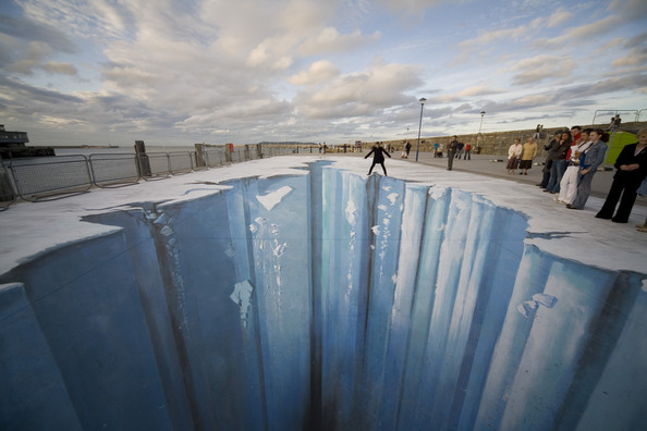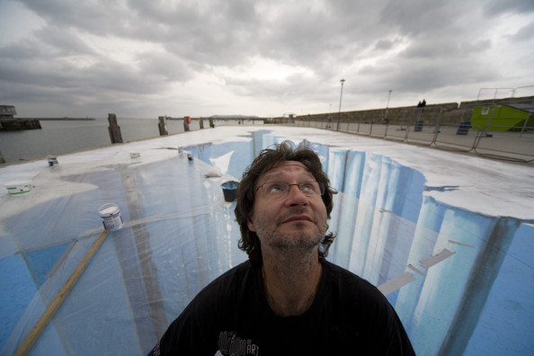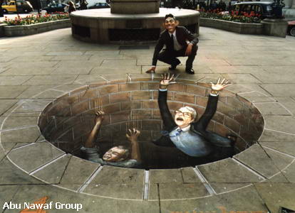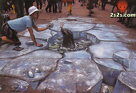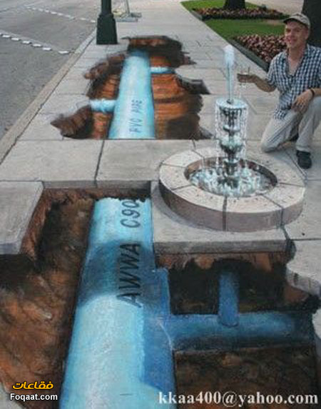 أظن الرسام يرسم على الحائط والصورة خداع بصري